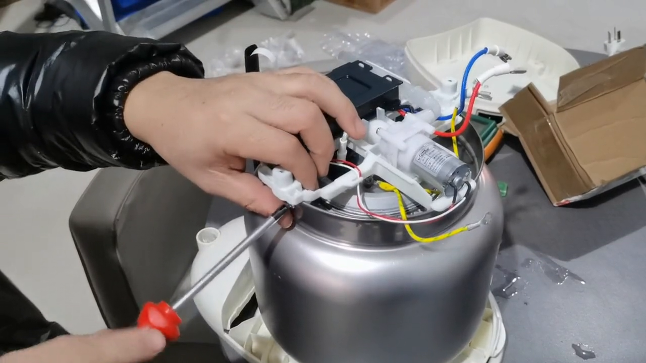 这个水壶是前几天使用的时候突然就不出水了,经过测量是里面的出水电机损坏,直接买一个装上就行。这东西看起来比较大,其实里面构造很简单。