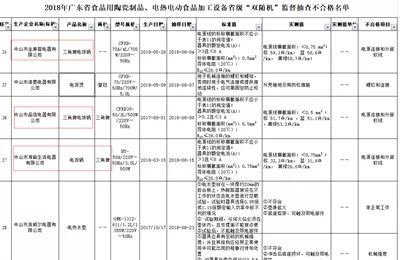 广东省市场监督管理局通报的2018年广东省电热电动食品加工设备省级“双随机”监督抽查结果中,CFXB-70A/4L/700W/220V~50Hz、CFXB30-50/3L/500W/220V~50Hz、HY-50A/220V~50Hz/3.0L/500W三批次不合格型号“三角”牌电饭锅的生产厂家分别为:中山市金美誉电器有限公司 、中山市品信电器有限公司 、中山市海瑜生活电器有限公司 。