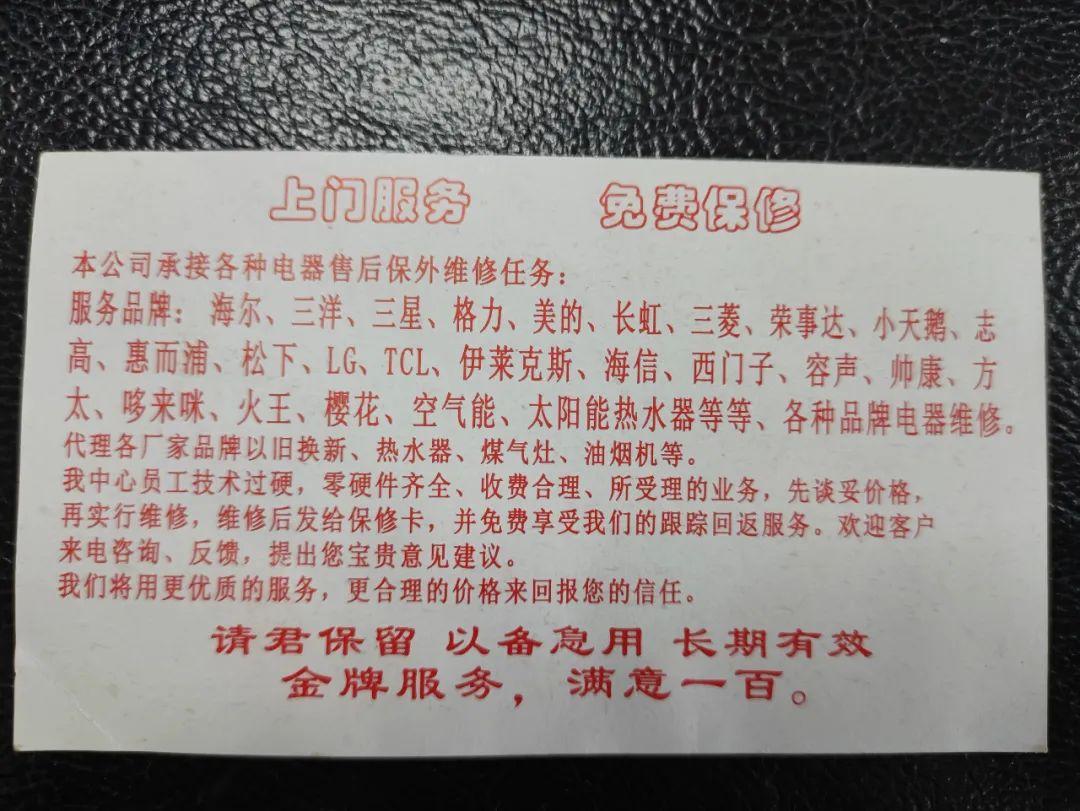 家电维修的宣传小卡片
