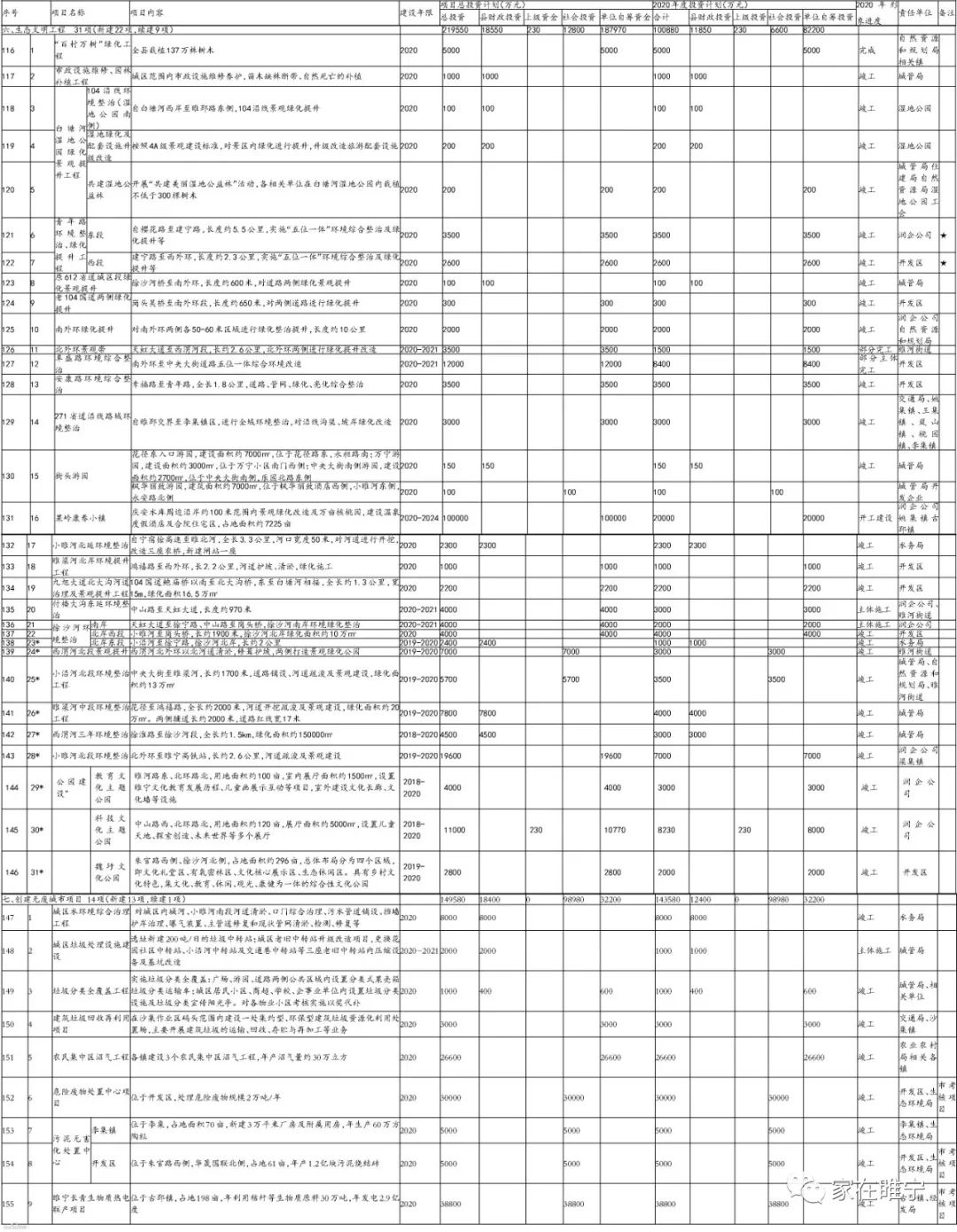 表格文字较小,很考验眼神,小编在这里把一些重点工程和大家比较关心的几个项目给大家稍作整理。