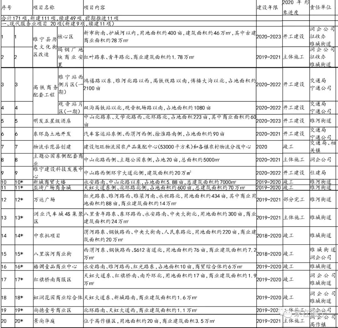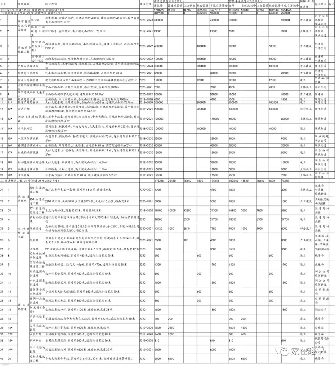 网曝!睢宁县2020年城建重点工程编排计划表,涉拆房屋6548户