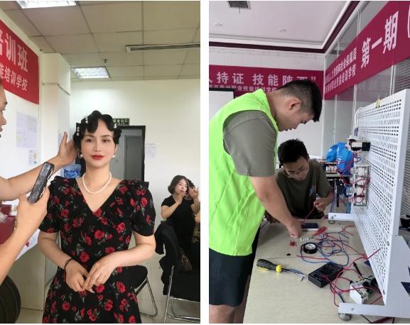 技能培训课堂上,专业的授课老师不仅仅通过多媒体演示、互动教学、现场模拟操作等形式,对职业道德、职业礼仪等理论知识进行讲解,在实操课上更是注重实践能力的培养和提升。形象设计师专业通过着装、发型、穿搭等实践操作练习和学员间互动,提升学员审美能力和形象设计水平;起重装卸机械操作工培训班通过专业理论知识学习和操作技能训练,学员合格后可达到机械起重工初级的技术等级要求;电工培训课堂上注重夯实学员独立完成电路的安装调试、维修等基本工作能力。