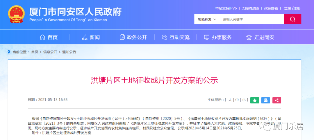 5月13日,同安区政府发布关于洪塘片区土地征收成片开发方案,多个村庄将拆迁!