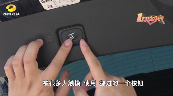 还有这个后尾箱的按键,你看,这明显就是裂开的,有很多人按过一样。因为这个尾箱门是电动开关,只要在车子下面踢一脚就可以开关的,我们是不会去按的,这明显就是按多了。