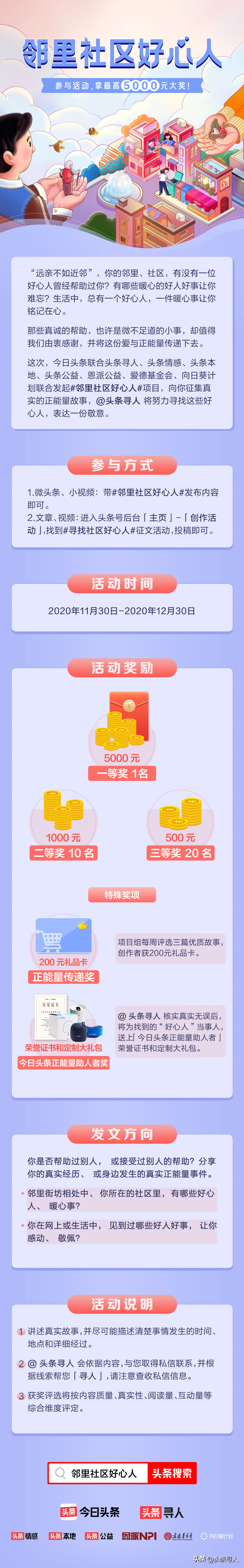 @头条寻人联合 @今日头条@头条情感@头条本地通@头条公益@恩派公益@爱德基金会@向日葵计划联合发起 #邻里社区好心人#项目,向你征集真实的正能量故事, @头条寻人将努力寻找这些好心人,表达一份敬意。