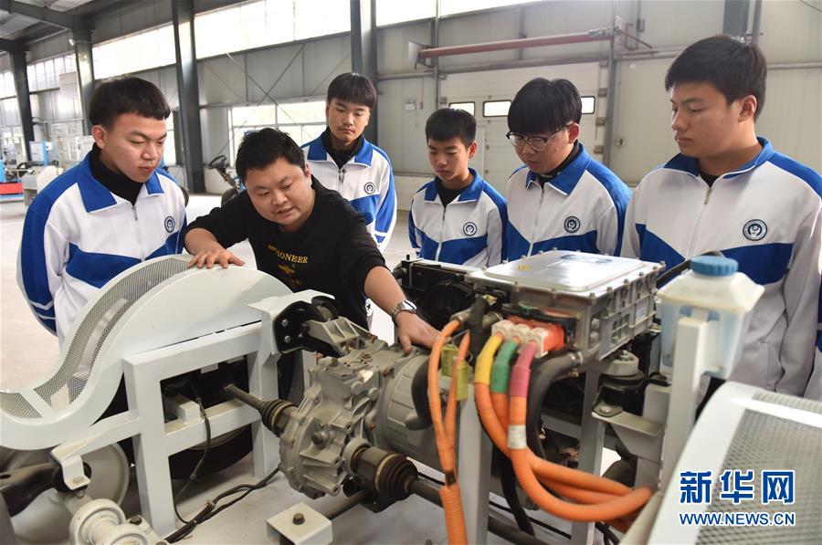 11月10日,河北省威县职业技术教育中心老师为学生讲解电动汽车电机结构。 近年来,河北省邢台市威县职业技术教育中心以就业市场需求为导向,创新“校企合作”“定向培养”“工学结合”的人才培养模式,培养“订单式”职业人才,让学校、企业、学生多方共同受益。 新华社记者 朱旭东 摄