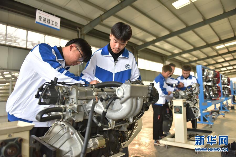 11月10日,河北省威县职业技术教育中心学生在变速器实训车间练习操作技能。 近年来,河北省邢台市威县职业技术教育中心以就业市场需求为导向,创新“校企合作”“定向培养”“工学结合”的人才培养模式,培养“订单式”职业人才,让学校、企业、学生多方共同受益。 新华社记者 朱旭东 摄