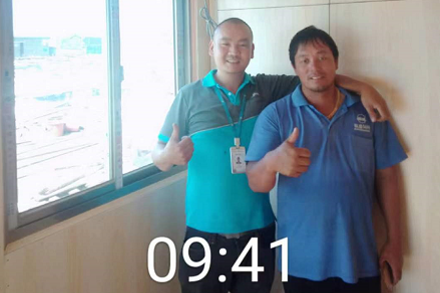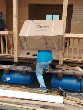 抵达用户家后,开箱、验货、装机,李师傅动作非常麻利。由于空调安装的位置靠近水边,屋边能站的位置非常窄,人走在上面木板会跟着晃动,外机万万不能掉水里,难度可想而知。 李师傅屋里屋外忙活近2个小时后,空调才装好。客户吴先生说,没想到能送,更没想到这么快就能装好,当天,李师傅就收获了一个大大的赞。