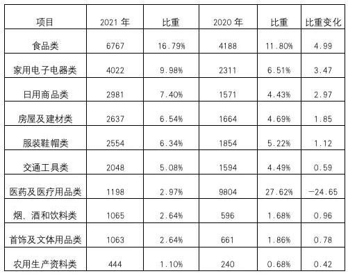 2021年食品类投诉量位居榜首。
