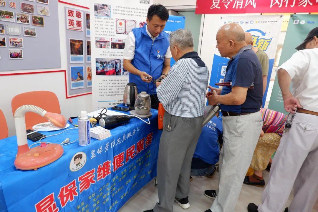 除了家电维修,居民们还可以在现场享受到空调清洗、家电换新、室内免费局改设计等服务。据悉,“夏令清风”闵行家电维修及以旧换新嘉年华——上海苏宁易购社区服务直通车将在红春公寓居民区党群服务中心持续到8月28日 ,为周边社区居民提供便利。活动现场,不少居民驻足在上海显保实业有限公司摊位前咨询,“台灯接触不良怎么办?”“电饭煲插电没反应,还能修吗?”……