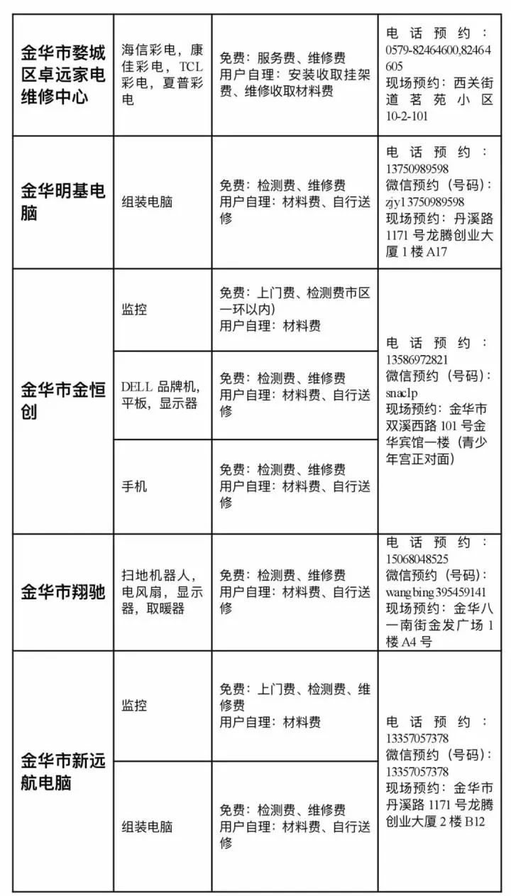 注: 活动期间,免上门费、维修费,消费者一般只需要承担维修的材料费。