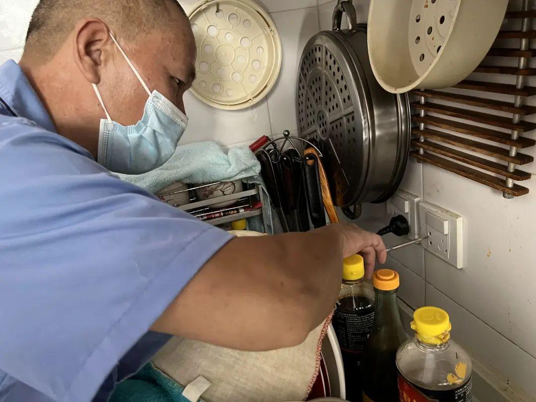 假期期间,羡华物业办公室24小时维修电话响了起来,居民朱阿婆焦急万分,说厨房一个三孔插座突然无法供电了,而自己和老伴年事已高,无法自行检查维修。余本锁闻讯,急匆匆地赶到朱阿婆家,经过检查,发现三孔插座因为线路老化,出现了接头断裂的情况。与老人沟通协商后,他为老人换上新的三孔插座,保障老人正常使用厨房。