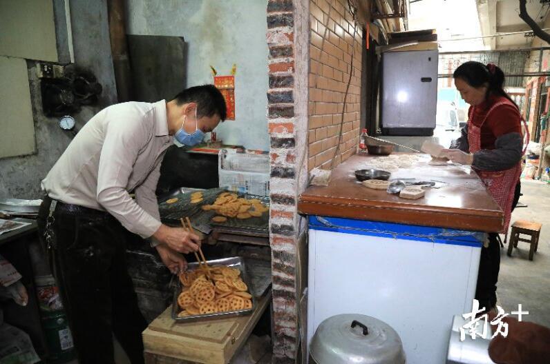 “家家割糖环,户户油角香。”春节将至,东莞大朗镇大街小巷弥漫着浓郁的年味,不少街坊开始张罗起果品糕点。作为大朗传统“年果”的糖环,是大朗人过春节、家内添丁必备的应节小吃,在物质生活日益丰富的今天,许多家庭已不再自制糖环,但家住大井头社区的糕点手艺人达叔,仍然延续着传统,每年出产数千斤糖环供不应求,油香四溢的小院里,摊晾出一盆盆金色的喜悦。