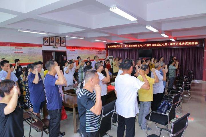 大门镇甲山社区党员与滨江街道陡门社区党员集体重温入党宣誓