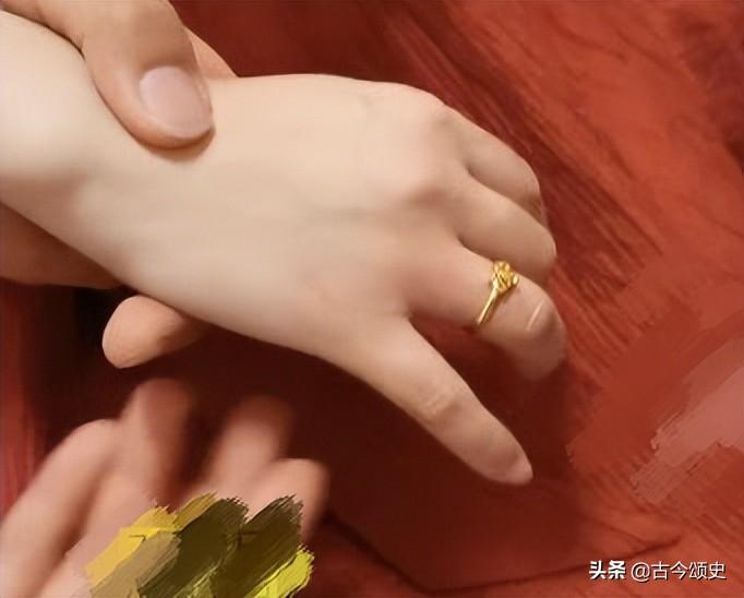 随即新郎杜亚甫从家人递过来的小盒子中拿出了一枚皇冠形状的金戒指,深情款款地为新娘徐冯晨戴在手上,并且再次表白道: