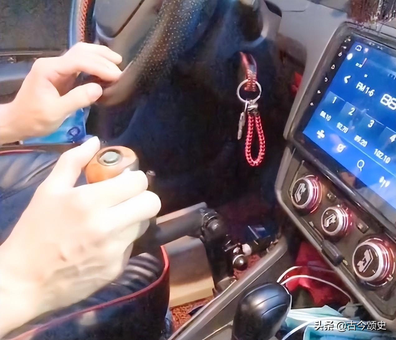 最后,杜亚甫会用木质把手,撑着自己的身体,把自己挪上驾驶员的位置然后关好车门。