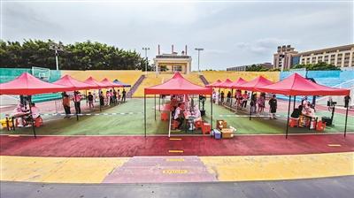 6月4日,番禺区钟村街启动全员核酸检测工作,一场与病毒“赛跑”的硬仗开启。当日下午2时开始,钟村全街8个行政村、6社区共26个采样点同时开放,群众如约而至,有序进场接受采样。采样期间,街疫情防控指挥部现场坐镇,充分发挥统筹协调职能,科学调配人员和物资,应急处置突发情况。