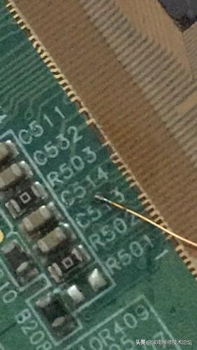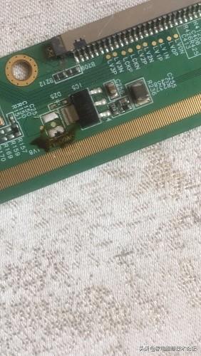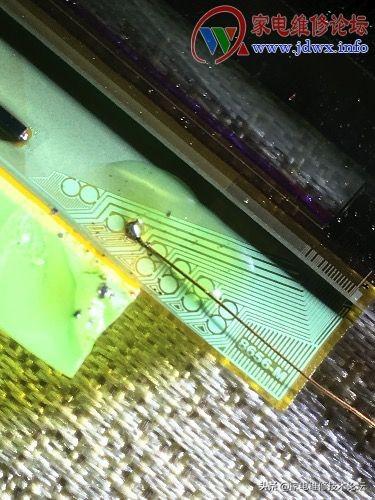京东方HV320WXC同行给我的屏,无图像、花屏竖带(竖带不是天到地 )京东方通病就是玻璃断线了,找到点位图飞线OK,改装到创维上面却有雪花点干扰,这个好办,不过是屏线接触不良嘛!再拆开清洗排线,失望了!还是雪花点干扰,那就换根排线!开机再一次失望!换一块37寸低分屏一切正常,这下确定屏故障了,加焊插座还是失望,仔细一下1V8好像少了一个电容,找到旧边条对比确实少了一个电容,原来同行修过搞掉了,装上开机OK,钱在招手了。(作者:caoyunwang)