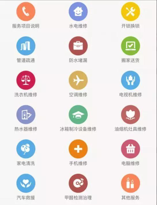 这次服务项目升级后,便民服务项目将增加至20个,涉及水电维修、开锁换锁、管道疏通、防水堵漏、搬家送货、洗衣机维修、空调维修、电视机维修、热水器维修、冰箱制冷设备维修、油烟机灶具维修、家电清洗、手机维修、电脑维修、汽车救援、甲醛检测治理、墙面钻孔、保洁、美缝打胶及其它服务等。