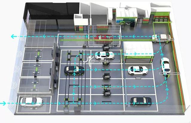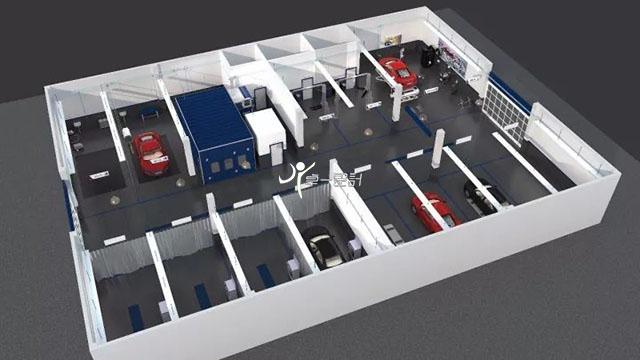 在做汽修厂车间设计时,设计师要对汽修厂常见的业务工作流程有所了解,这样才能在维修过程中以最少及最短的路线,达到最佳的工作效率。例如:钣喷流水线。