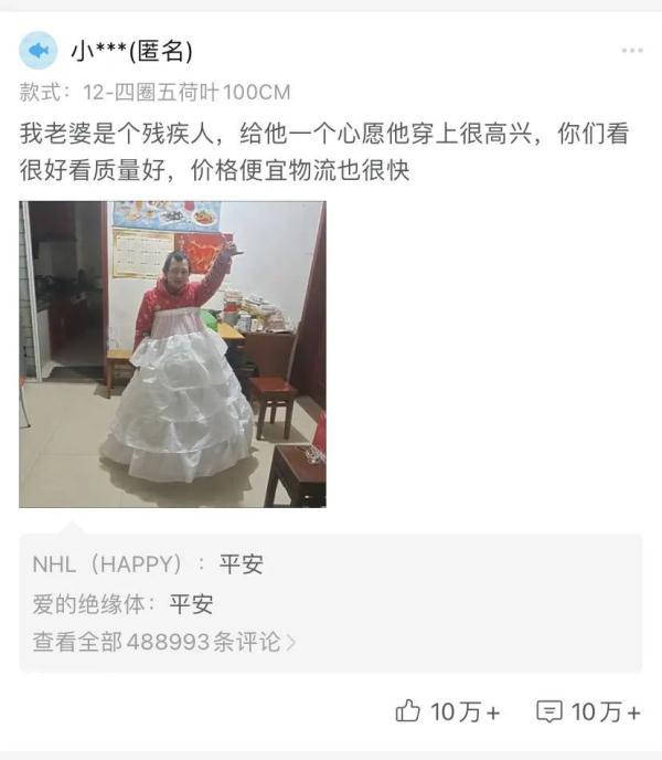 裙撑是在网上买的,38.25元,但能圆妻子一个婚纱梦,陈祥龙很高兴,发了条买家秀,仅一天,这张简陋的婚纱照点赞数就超过10万,网友的关心、祝福亦如潮涌,甚至有人发起捐款。