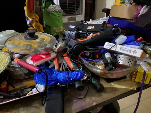 客厅的桌上,堆着陈祥龙用来开锁、维修家电的工具。