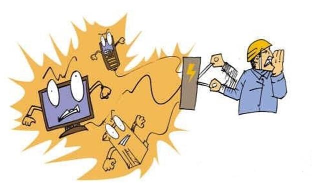 2. 湿手不要接触带电设备,不要用湿布擦带电设备,不要将湿手帕挂在电扇或电热取暖器上。