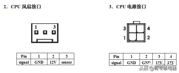 ATX12V······CPU供电的专用12V接口(2黄2黑共4根)