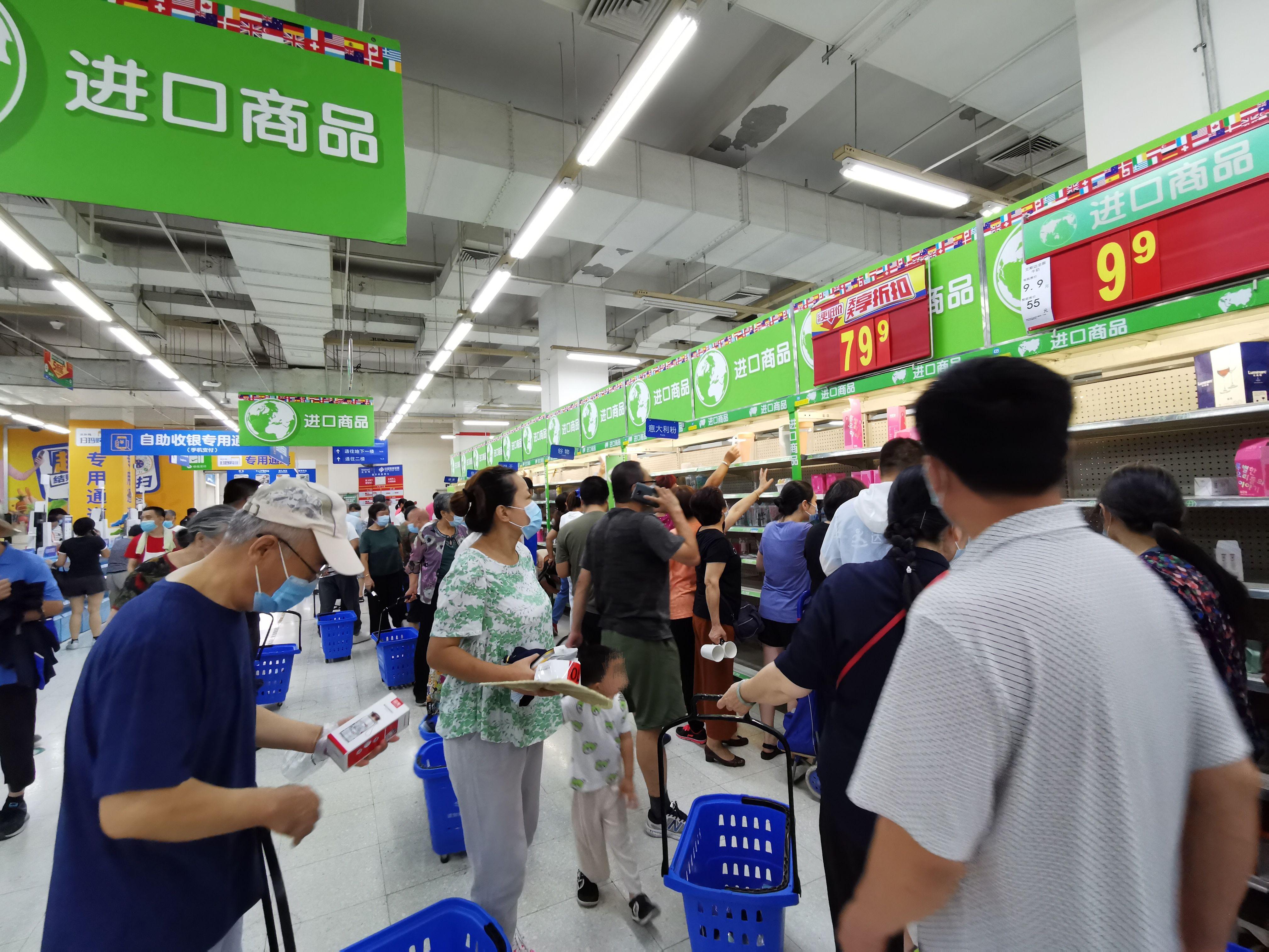 新京报讯(记者 欧阳晓娟)“这家沃尔玛是我对北京大超市最初的印象,就笑着说再见吧!”8月17日下午4时,沃尔玛北京海淀知春路店正式闭店停业,不少消费者和员工都在最后一天来捡漏,与这家有15年历史的大卖场“告别”。