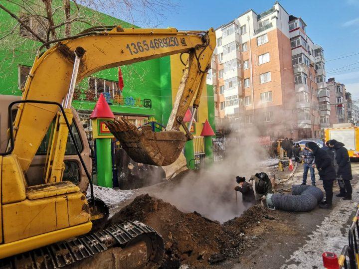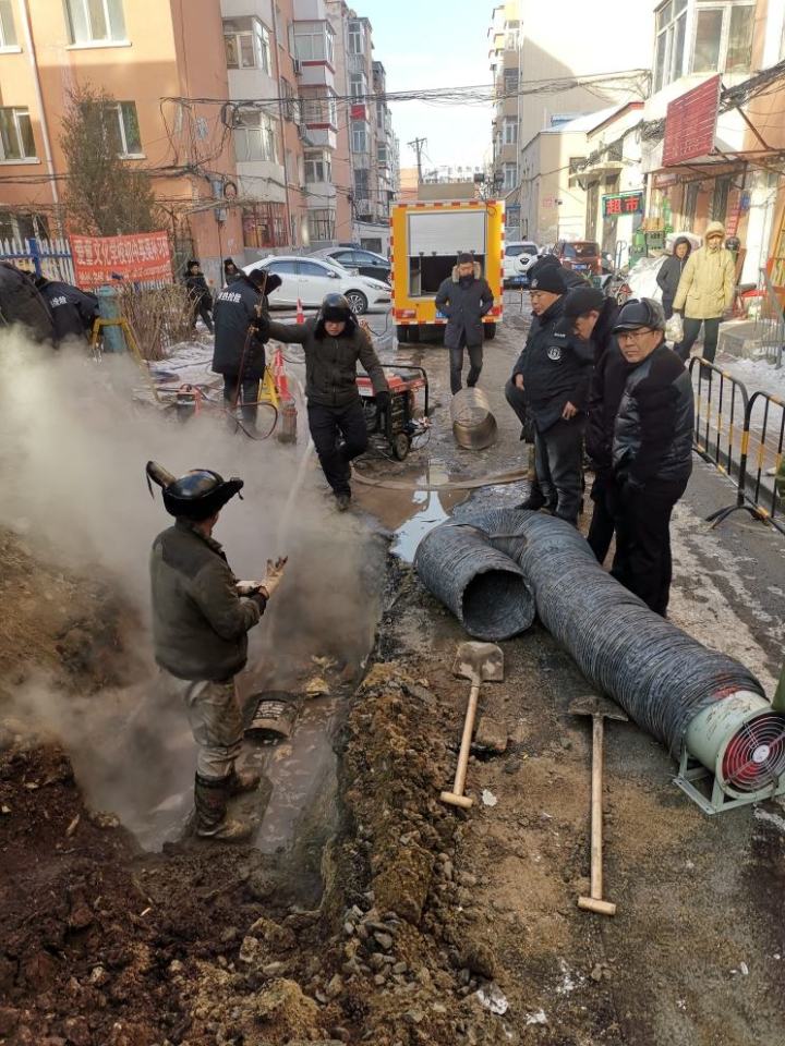 据香坊物业供热公司相关负责人介绍,6日9时,该公司在对所辖供热区域供热一级网巡查中发现,安埠小区108栋(爱童佳美幼儿园门前)路面积水并外排热气。他们通过技术手段检测,确定为安埠小区段供热一级网管线补偿器发生泄漏,立即将此情况上报相关主管部门,并第一时间启动抢险应急预案,组织大型机械设备及专业人员进行抢险维修。