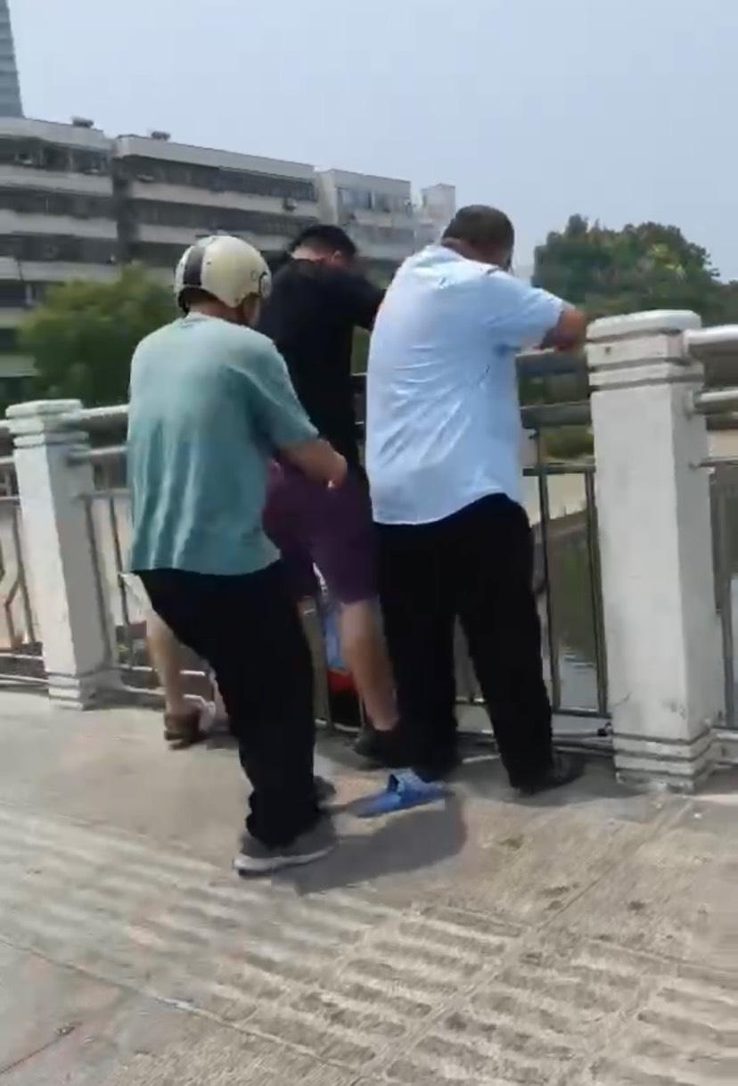 光明路湛河桥,男子欲轻生,众人忙施救