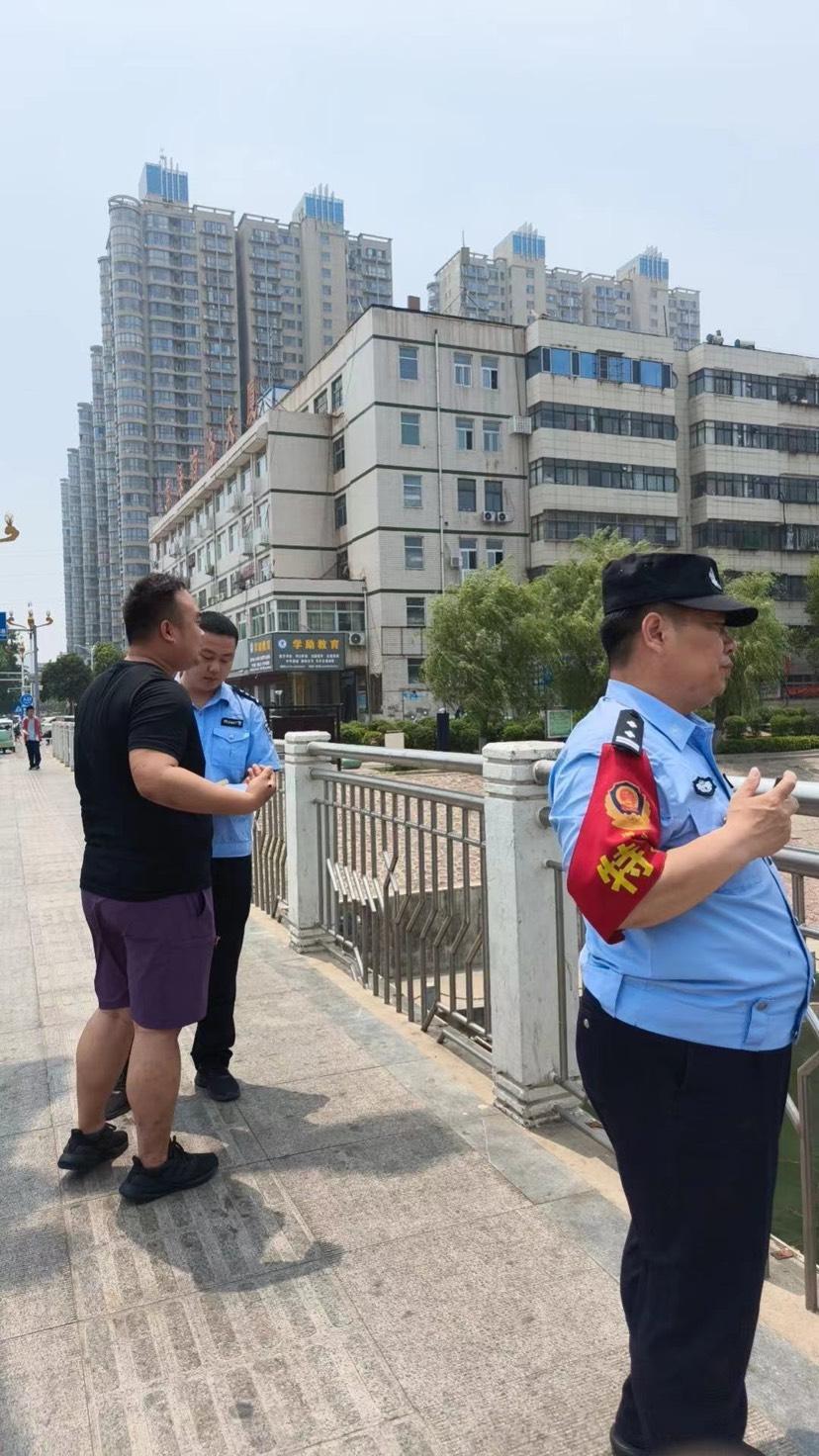 今年25岁的热心市民刘峥汕回忆说,5月25日中午,他骑着电动车带着妻子陈锦沿光明路由南向北准备去吃午饭。11点50分左右,他们行至光明路湛河桥时,看到路边售卖的西瓜不错,就停下来准备买个西瓜。“买瓜的时候我才注意到,瓜车后面的桥边站着一个中年人。”心细的刘峥汕说,那名男子身穿蓝色衬衣,似乎是喝了一些酒,光着脚站在桥栏杆外侧,面对着湛河,拖鞋就在脚边,似乎想要轻生。为了避免发生意外,刘峥汕立即拨打了110报警电话。