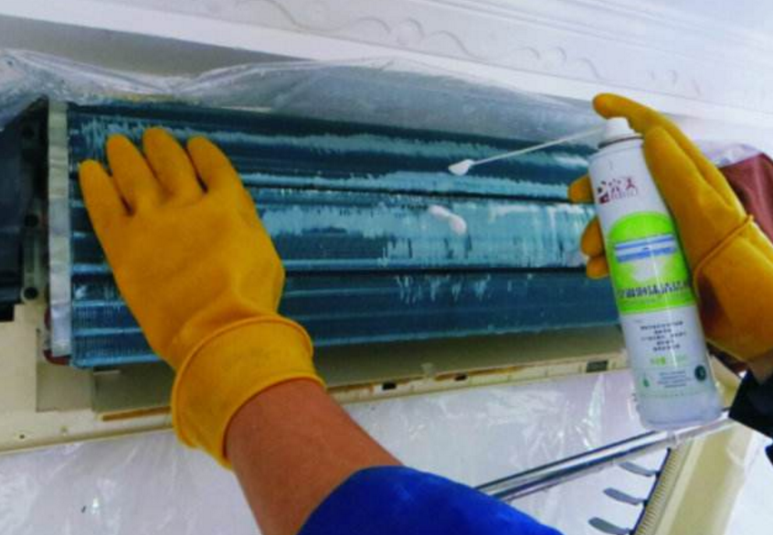 如果是空调蒸发器有大量污垢,可以在网上买一瓶空调清洁剂,对着喷一会就清洗干净。