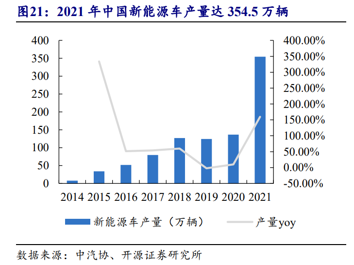 据中汽中心数据资源中心数据部部长李冰阳预测,2022 年新能源乘用车销量将 达到 480 万辆,同比增长 66.1%,市场渗透率将达到 21.2%。据中国充电联盟预测, 2022 年,我国将新增 190 万台随车配建充电桩,随车配建充电桩保有量将会达到 337 万台;新增公共充电桩 54.3 万台,新增后公共充电桩保有量将达到 169 万台,其中 公共交流充电桩 92.2 万台,公共直流充电桩 76.8 万台。