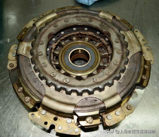 11. 这是取下的离合器,可以看到它表面烧蚀的很严重了,变黄发黑。