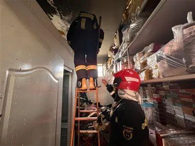 接警后,磴口县钢铁路消防救援站消防员迅速赶到现场。发生阴燃的是店内储藏室里的热水器,无明火。消防员利用梯子上前检查,将热水器旁边的可燃物移开,并对阴燃部位进行了覆盖。
