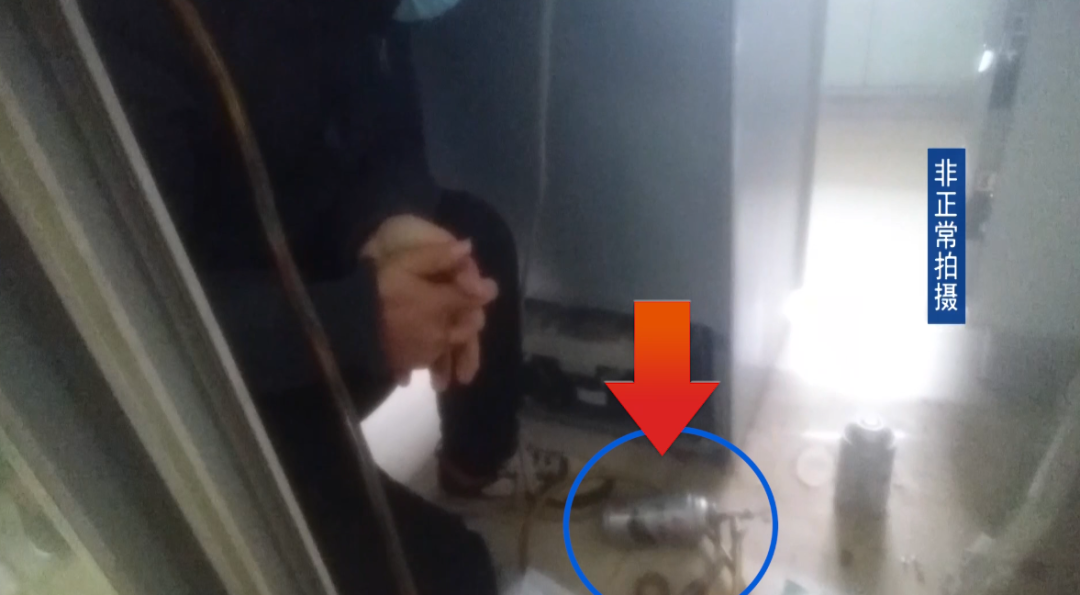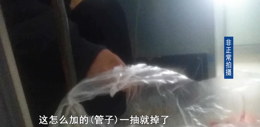 而录像也清晰地记录下了这位维修人员从包里拿出橡皮套丢在地上,假模假样更换,实际上并没更换的过程。