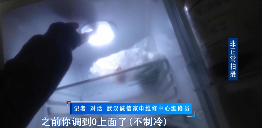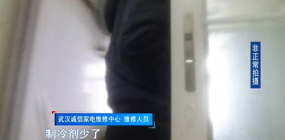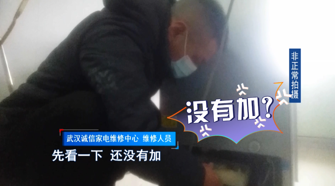 随后,记者通过网络搜索到一家名为“武汉市诚信家电维修中心”的维修人员,对方上门查看冰箱5分钟以后,给出了他的判断结果。