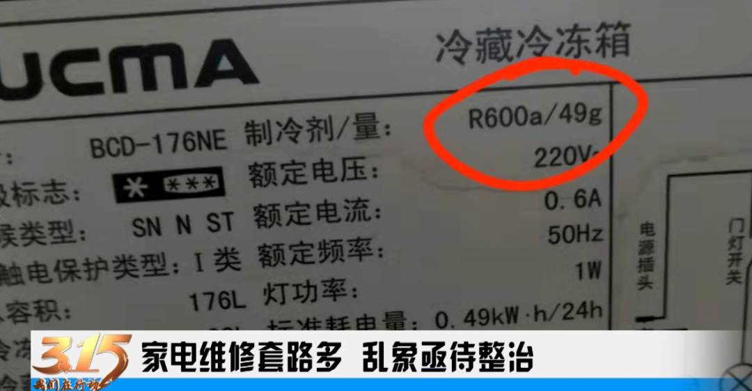 维修工程师仔细检查制冷剂后发现,冰箱上标注的制冷剂型号是R600a。