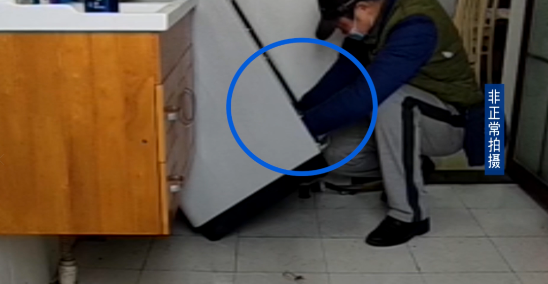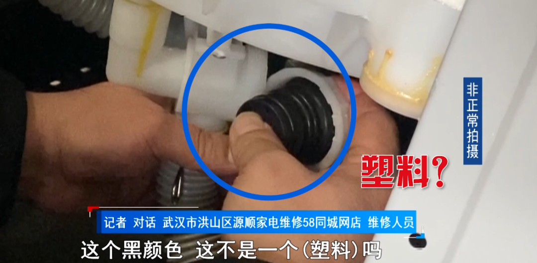 录像显示,维修人员右手从洗衣机内部抽出时,有个非常微小的往前甩的动作,维修工程师在查看完整维修记录并再次拆开洗衣机后箱检查之后,明确表示,维修人员右手甩的东西,就是之前被人为塞进排水阀门的毛絮。