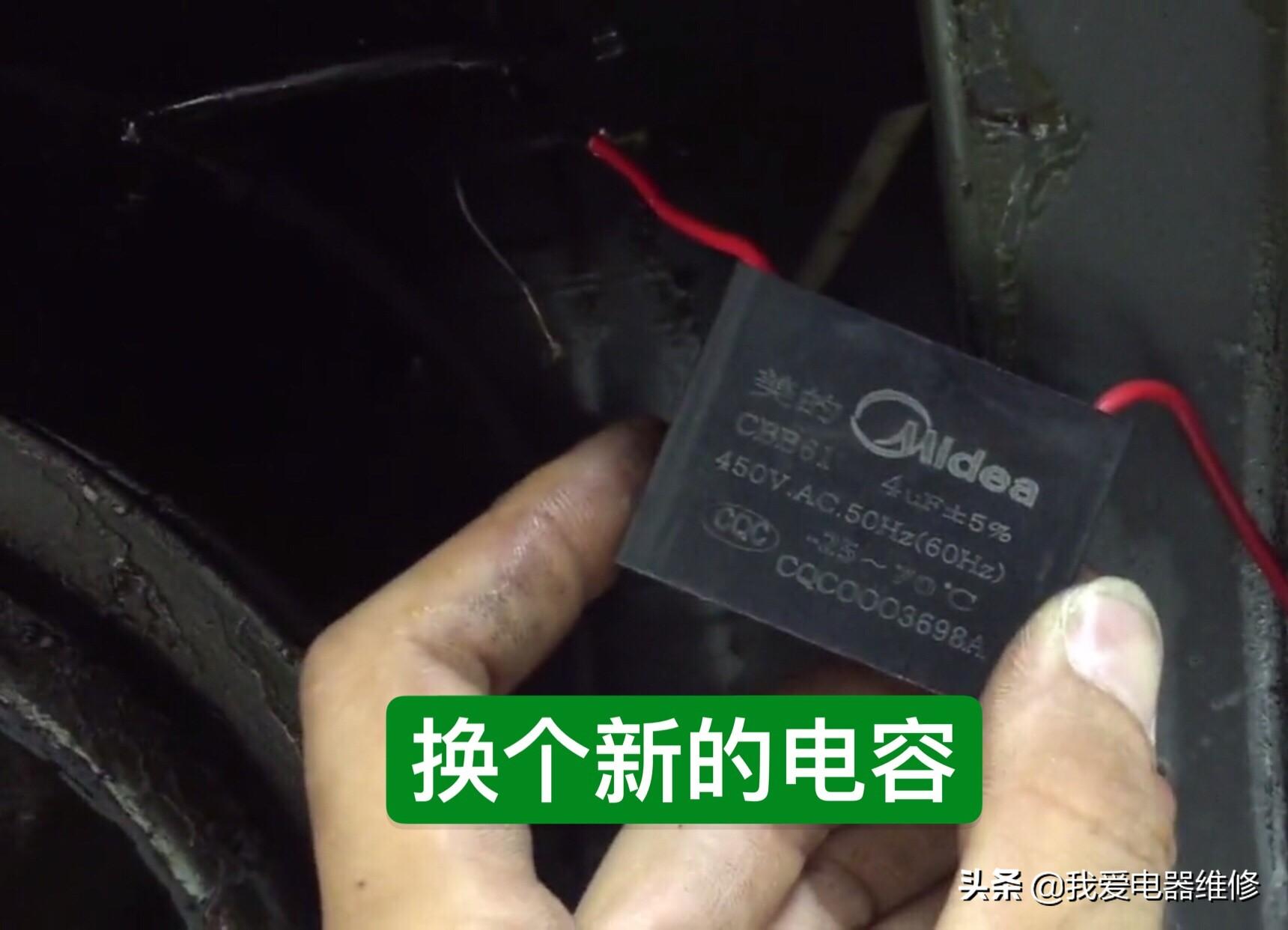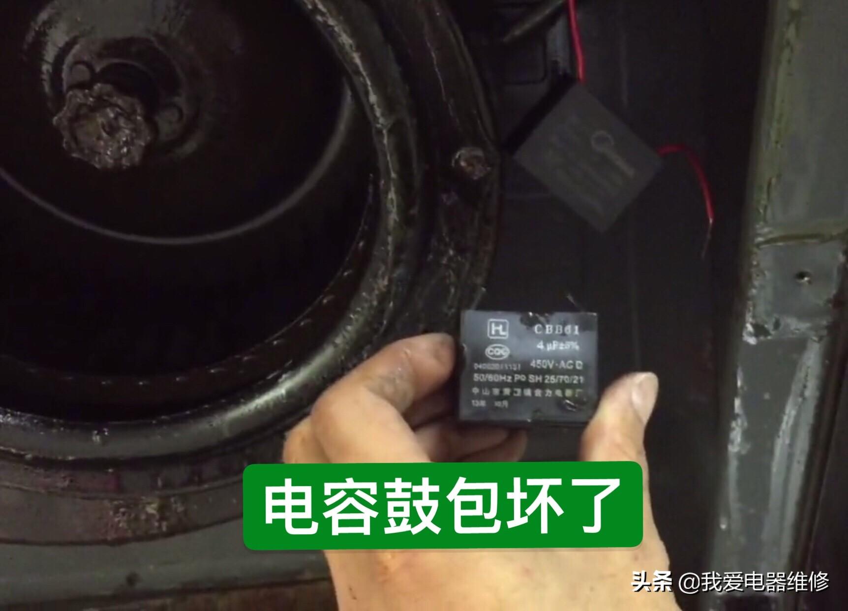 修一台油烟机,电机不转,开机听到有嗡嗡的电流声,可以判断出电机上是有电的,这种故障不是电机坏就是电容坏了,拆开先检查电容发现它鼓包了,直接更换一个同型号的,然后试机电机转动了,这台油烟机故障修复。