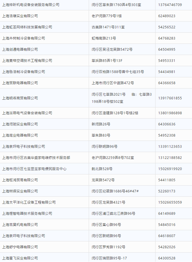市商务委公布476家2020年家电维修服务行业推荐企业名单和297家信得过空调维修清洗服务推荐企业名单,分布在本市各区,营业地址、联系电话等信息一应俱全。有需要的小伙伴可以收藏哦!