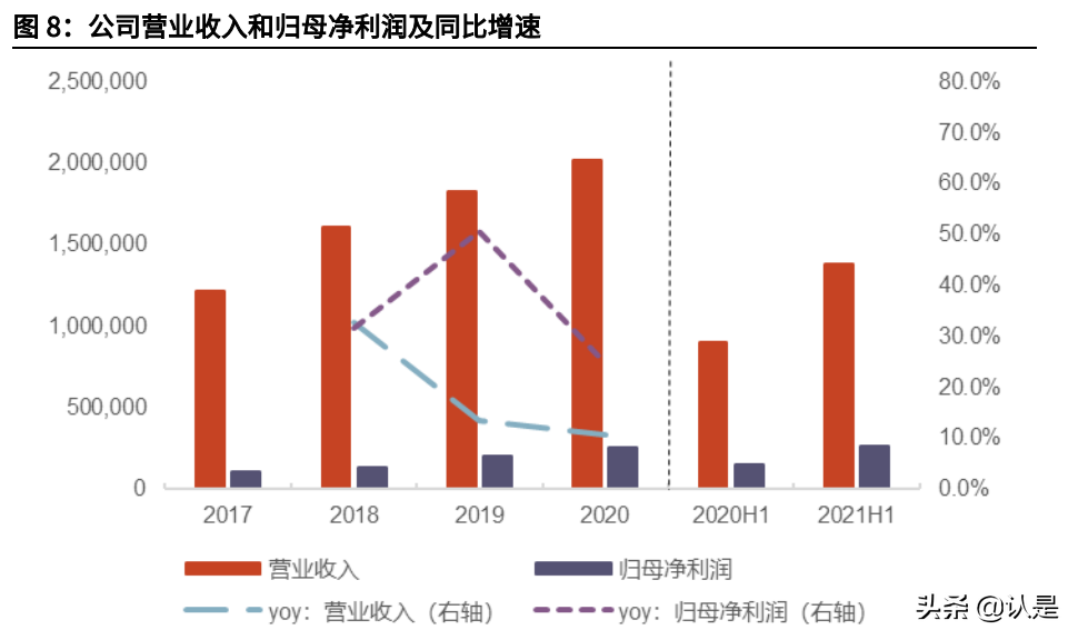 从营业收入和归母净利润来看,2017-2020 年,公司营收从12.1亿元增加至20.2 亿元,三年复合增长率 18.6%;归母净利润从 1.0 亿元增加至 2.6 亿元,三年复 合增长率 37.5%。公司营收及归母净利润保持持续增长,且归母净利润增速持 续高于营收增速,经营能力较为优异。 2021 年中期公司录得营业收入 13.8 亿元,同比增长 53.2%,录得归母净利润 2.6 亿元,同比大幅提升 73.3%,实现跨越式增长。