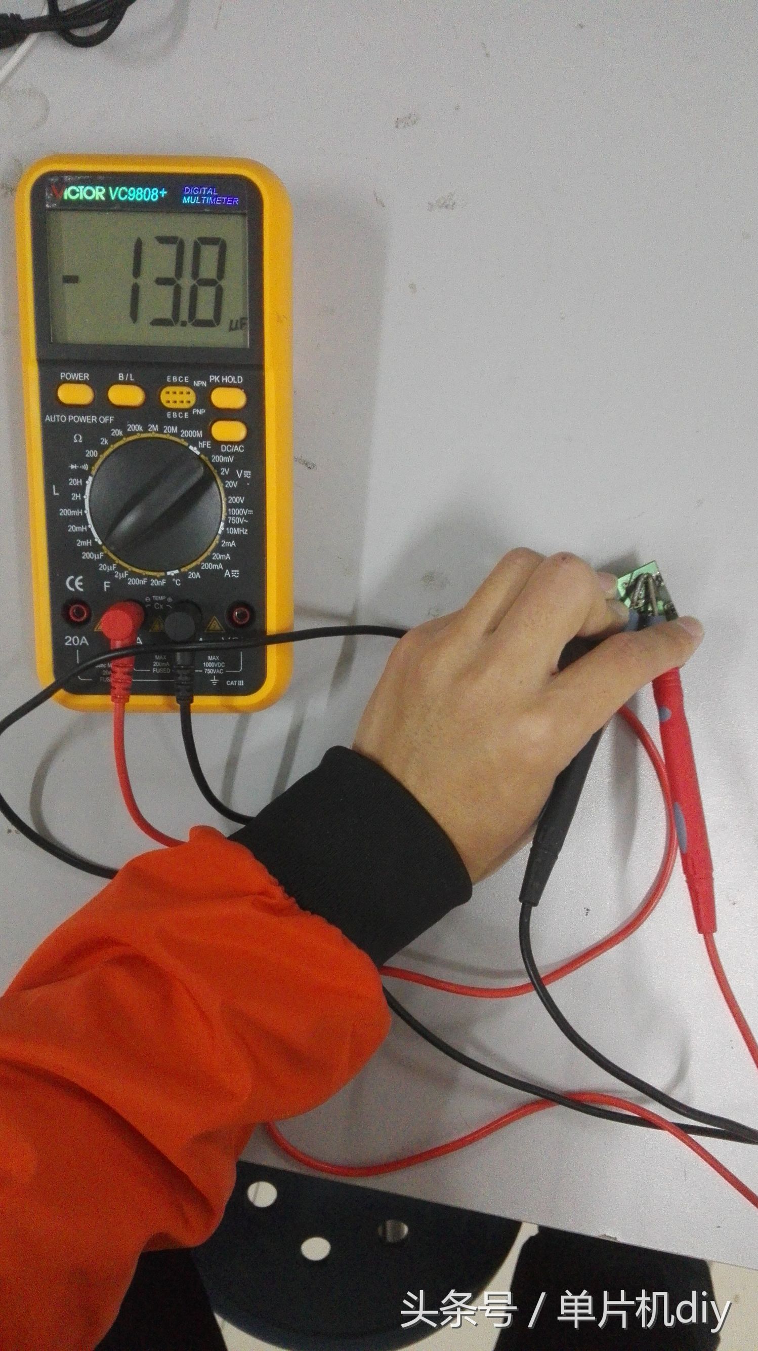 经过我们用万用表检测可以清楚地看到,那个小电容测出来是由示数的,读出万用表显示示数,然后再对比下电容上实际标注数值,如果这两个数值接近那么说明电容正常,我们这个电容标注10uf,测出来13.8uf可以说是接近了。