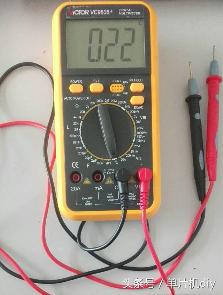 第一步:把万用表调到电容档选择合适的量程