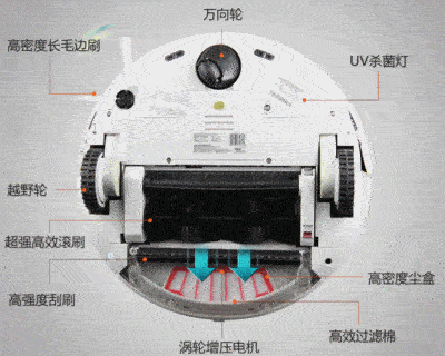 扫地机器人机身为自动化技术的可移动装置,与有集尘盒的真空吸尘装置,配合机身设定控制路径,在室内反复行走,如:沿边清扫、集中清扫、随机清扫、直线清扫等路径打扫,并辅以边刷、中央主刷旋转、抹布等方式,加强打扫效果,以完成拟人化居家清洁效果。