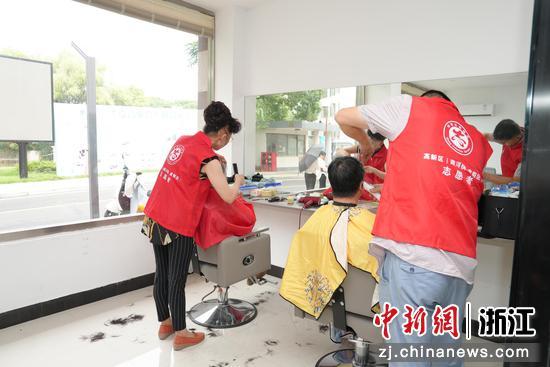 志愿者给居民提供理发服务 徐家辉 供图